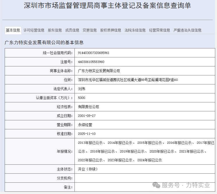 原公司名稱:深圳市力特實(shí)業(yè)發(fā)展有限公司