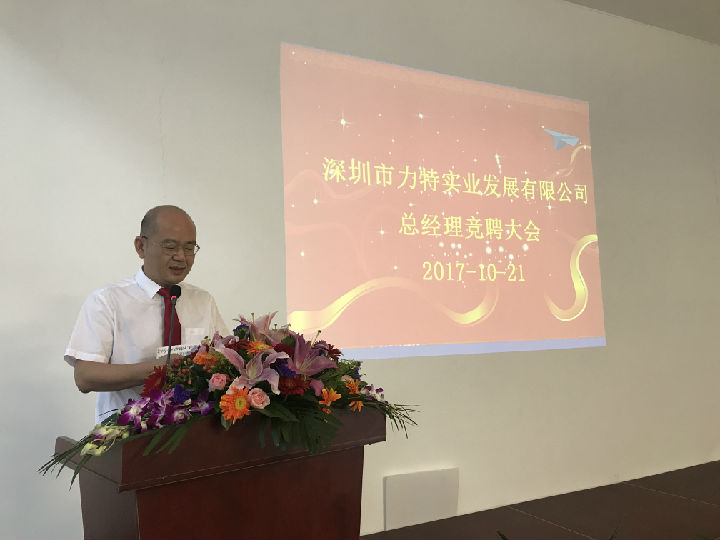 2017年10月20日公司37位主要員工聚集一堂,廖文勝和肖青勝兩位候選人參加了兩年一度力特公司總經理競聘大會,在競聘演講和回答提問環(huán)節(jié)后經過大家的民主投票,最后廖文勝以一票之差獲勝,成功當選力特公司總經理。