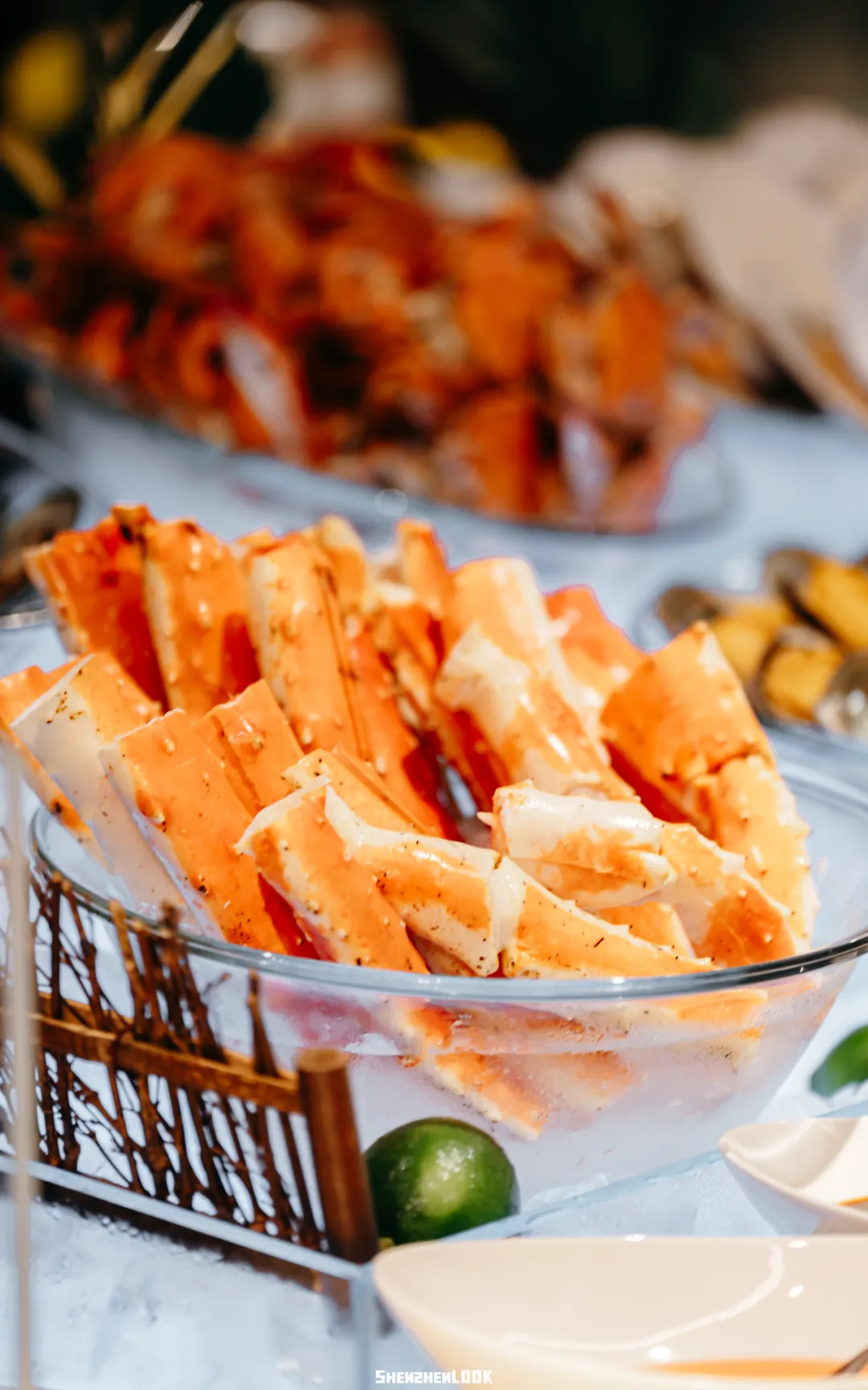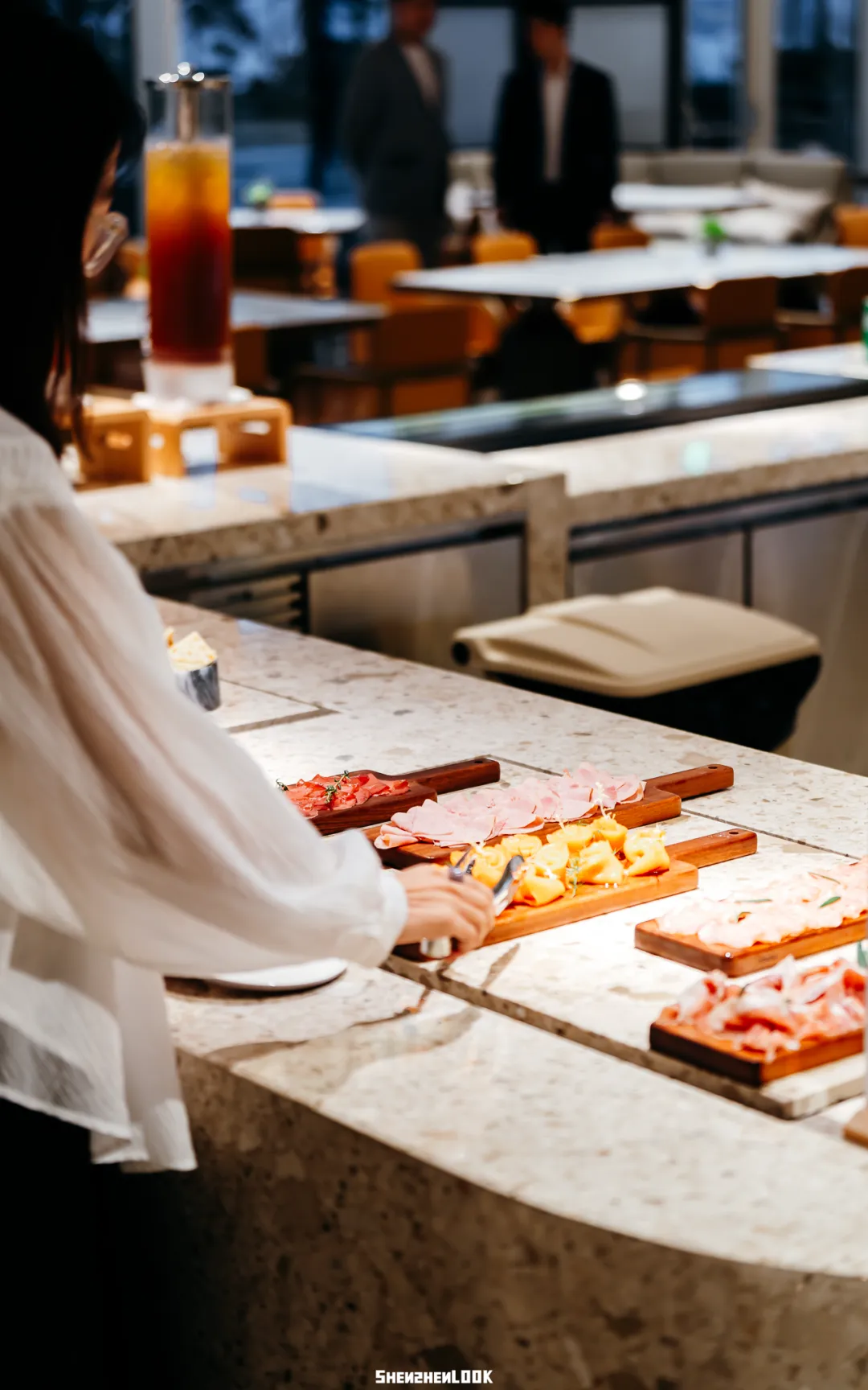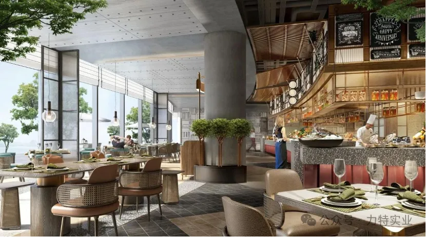 空間以藝術(shù)玻璃與流動曲線結(jié)合點(diǎn)綴,天然藝術(shù)與木質(zhì)肌理層層迭迭,雅致深深。美學(xué)設(shè)計之余,餐廳還有這充滿活力著裝的娛樂服務(wù)團(tuán)隊(duì),在服務(wù)中穿插更多的與客人互動環(huán)節(jié),將娛樂活動貫穿在餐廳中,一如“歡宴”所寓。 ○街市食館 · 自助早、午、晚餐